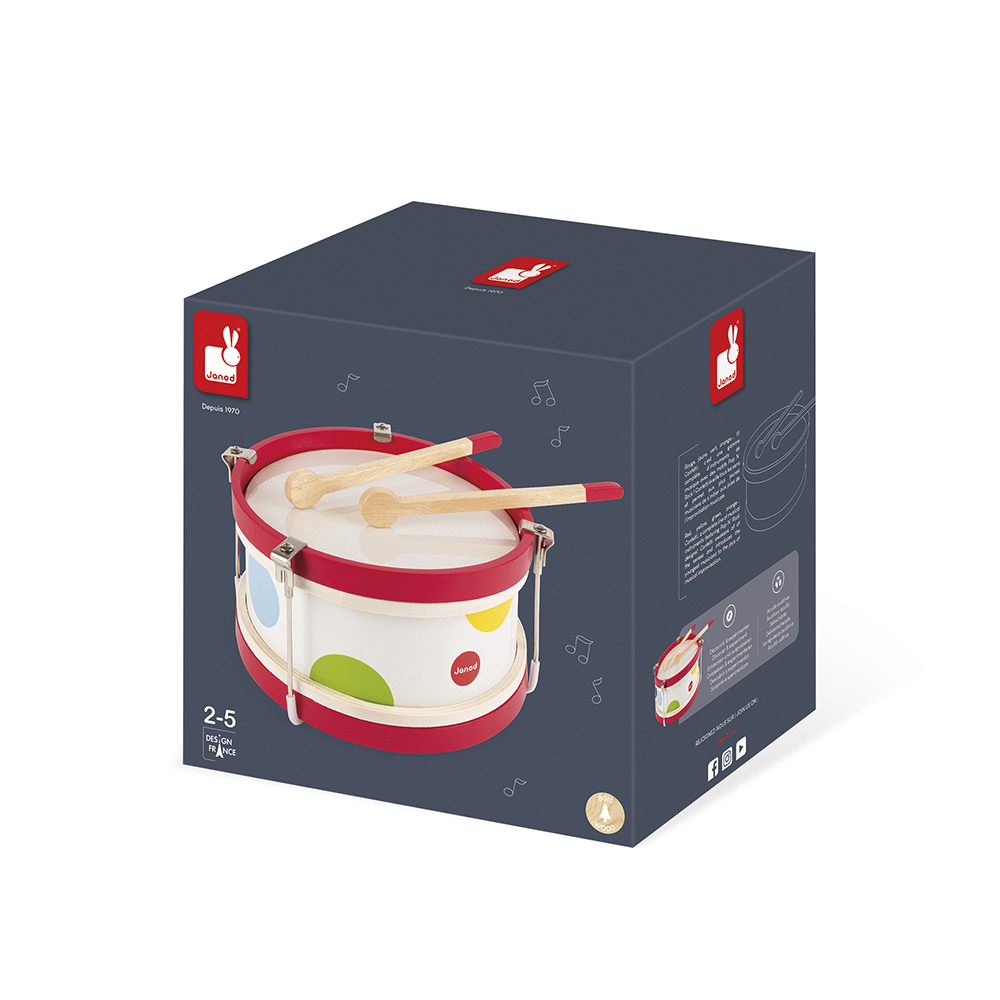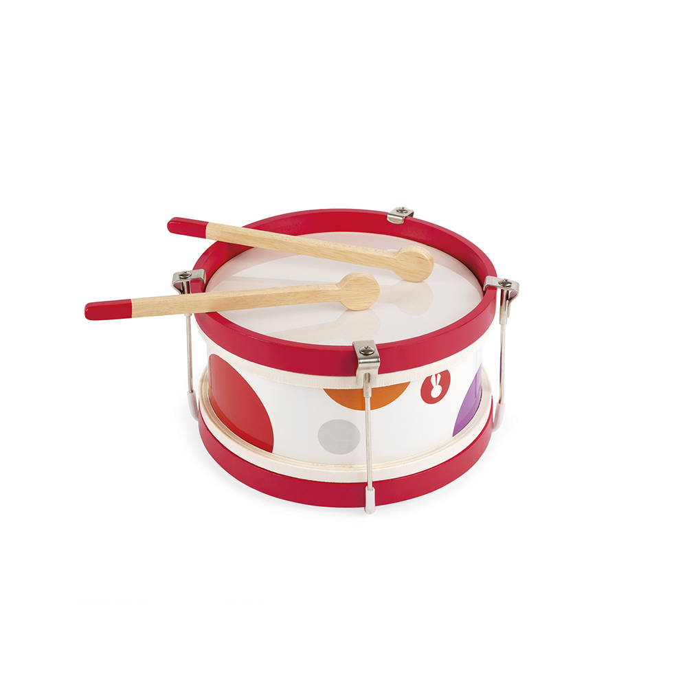 Trommel van de serie Confetti en 2 stokjes. Geschikt voor peuters/kleuters vanaf 24 maanden.