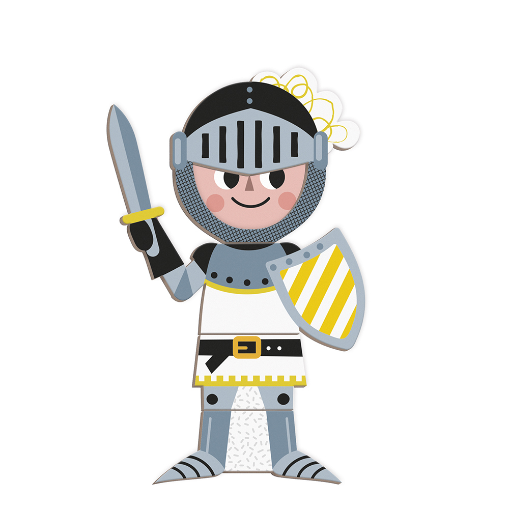 Educatief magneetspel van karton met vermommingen voor jongens als thema. Bevat 36 magneten en 8 kaarten. Open het boek en maak dezelfde vermomming als deze die op de kaart is aangegeven met behulp van de magneten.