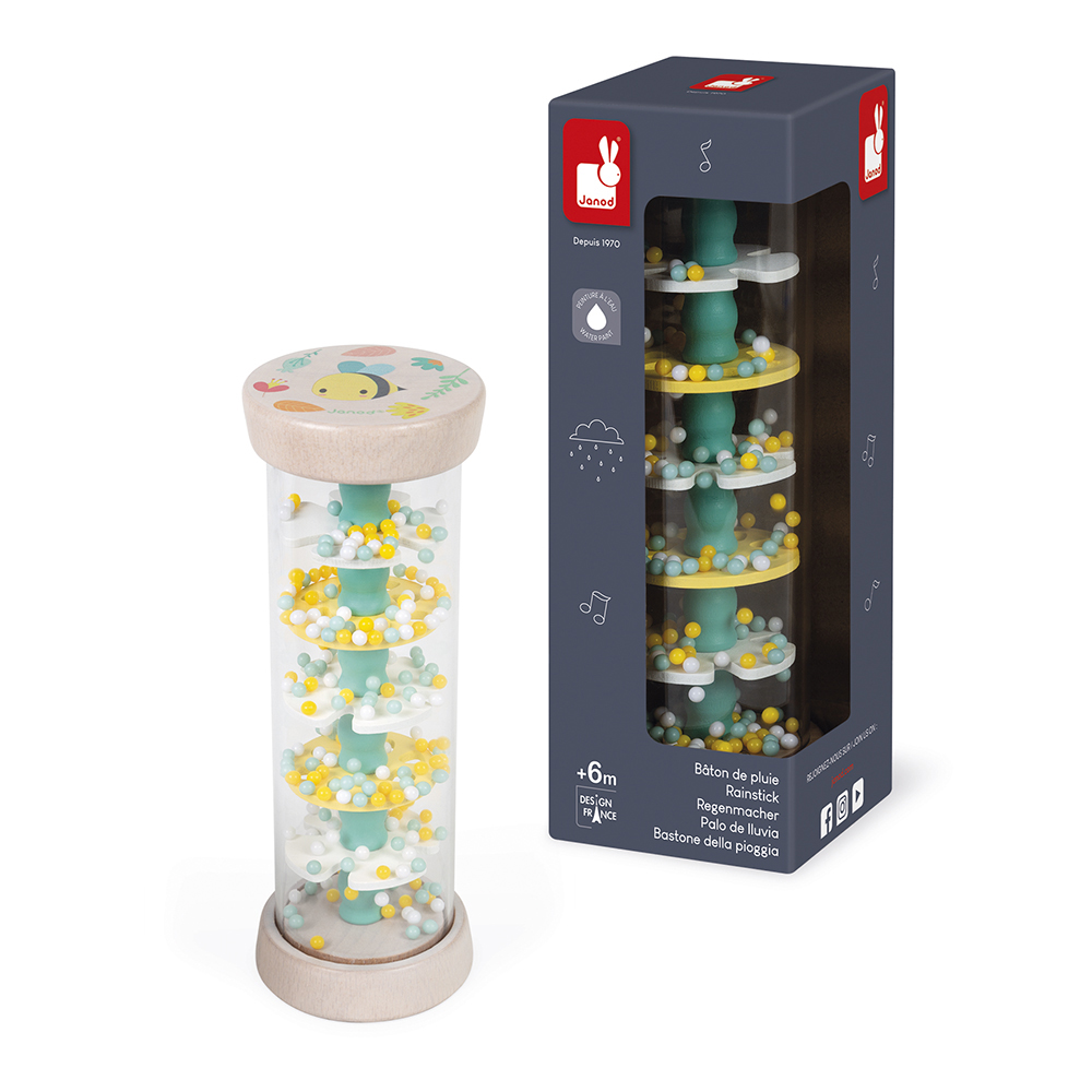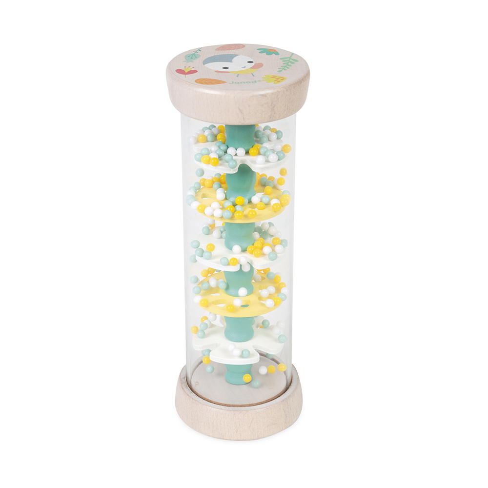 Deze leuke regenmaker vergezelt het kind tijdens zijn muzikale bewustwording en stimuleert de gezichtsscherpte. Draai de regenmaker ondersteboven en de balletjes doen je denken aan het zachte geluid van regendruppels. Ergonomisch design Zijn ergonomische design zorgt ervoor dat het eenvoudig vast te pakken is, zelfs door de kleinste handen. Waterverf.