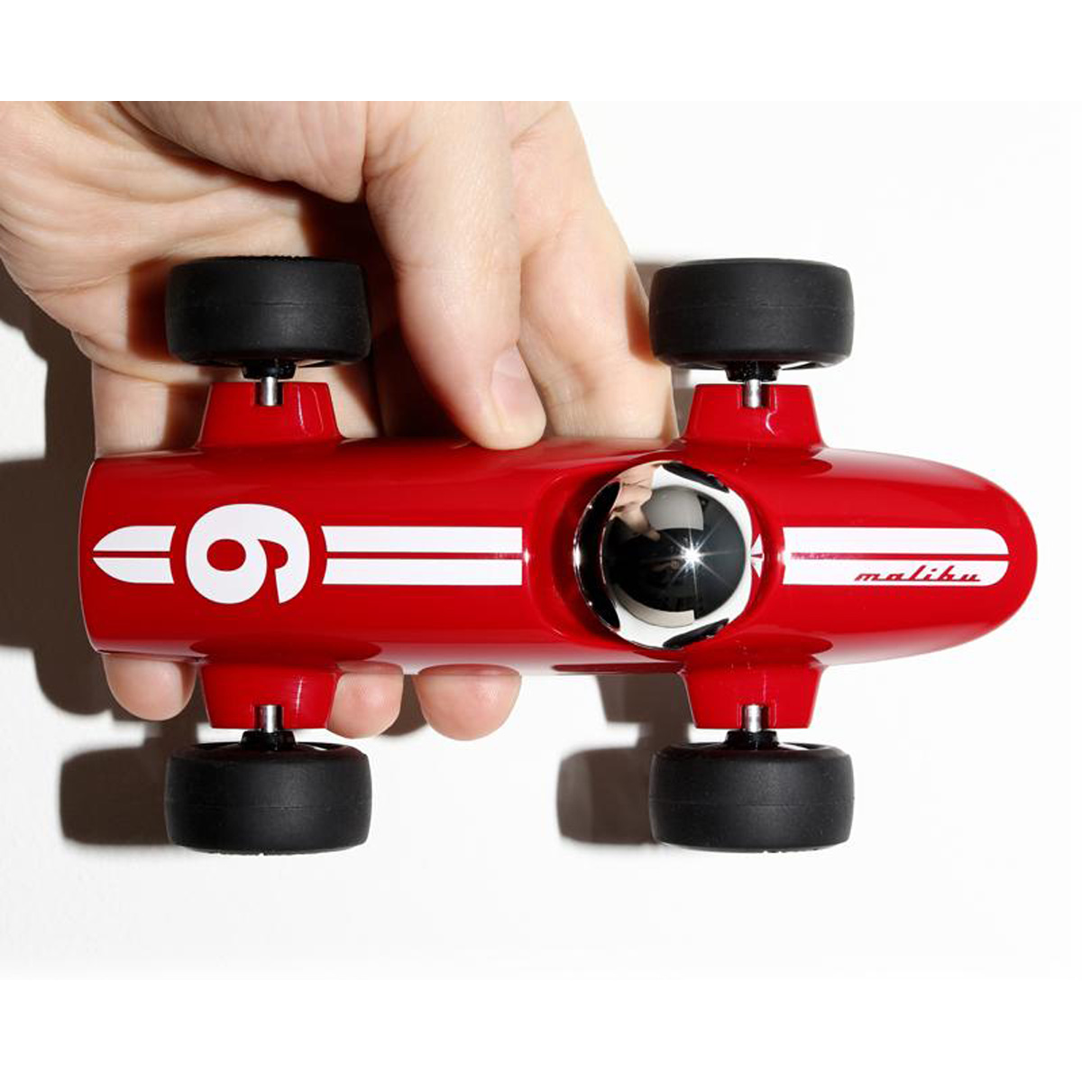 Op je plaatsen, klaar, start! Je kunt het gebrul van de motor bijna horen terwijl Malibu klaar staat voor de race. Geïnspireerd op de Maserati Formule 1-auto’s uit de jaren ’20 en ’30, maar met een Playforever-twist, is onze Malibu gebouwd voor snelheid. Met een puur en eenvoudig sigarenbuischassis, lange neus en wijde mond, zijn vorm slank en gestroomlijnd, terwijl zijn brede profiel, laag bij de grond geplaatste rubberen banden hem het gedurfde vertrouwen geven om alle anderen aan de start te evenaren
